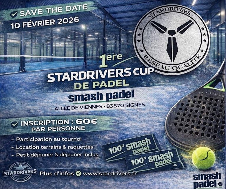 Lâassociation Stardrivers est fiĂšre dâannoncer lâorganisation de la 1Ăšre Stardrivers Cup de Padel, un Ă©vĂ©nement placĂ© sous le signe de la convivialitĂ©, du partage et de la rencontre, fidĂšle Ă lâADN de notre rĂ©seau.